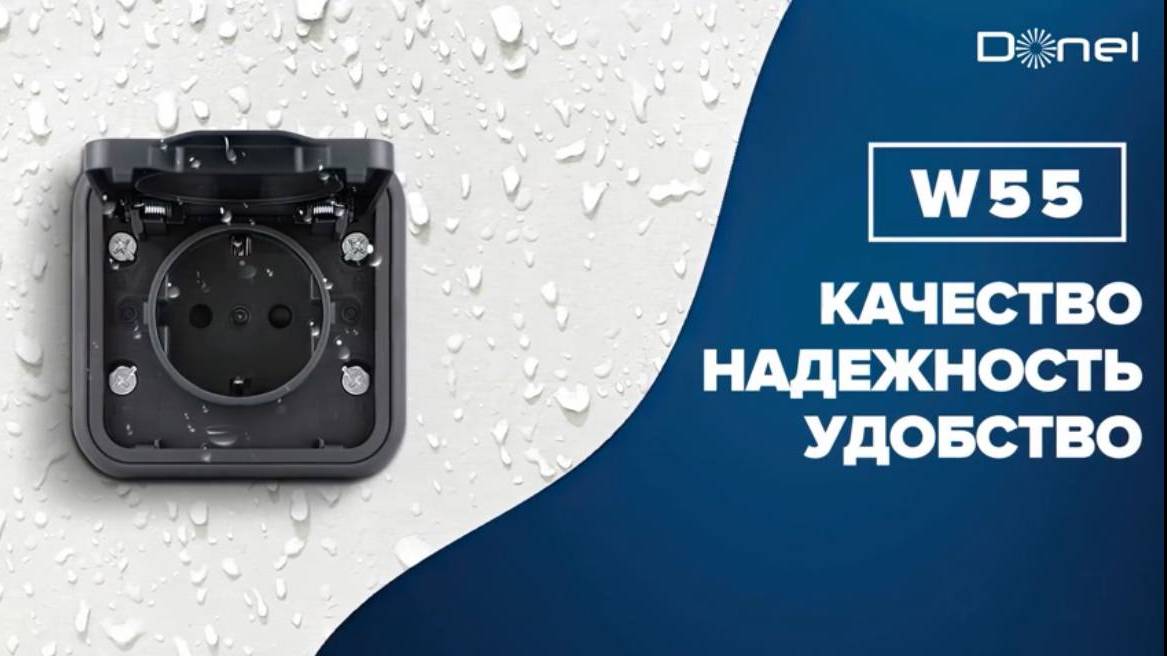 Идеальное решение для подключения электроприборов и управления освещением в пространствах с повышенной влажностью и запыленностью. Степень защиты IP55 гарантирует надежность и безопасность использования как внутри, так и снаружи помещений. Продуманный дизайн и высокое качество дают удобство в монтаже и эксплуатации. Прочный корпус из полифениленоксида (PPO) Крышки розеток с нержавеющими пружинами Степень защиты IP55; Съемные эластичные сальники с мембраной подходят для кабеля или трубы ⌀ до 20 мм Встроенный и накладной монтаж; 2 цвета: серый и антрацит; 5 лет гарантии на механизмы. https://donel.su/catalog/elektroustanovochnyie-izdeliya/seriya-w55
