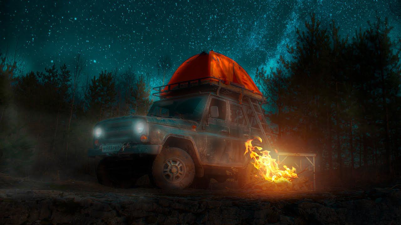 Ночую в палатке на крыше УАЗа под звездным небом | Лесная кухня | Внедорожные путешествия