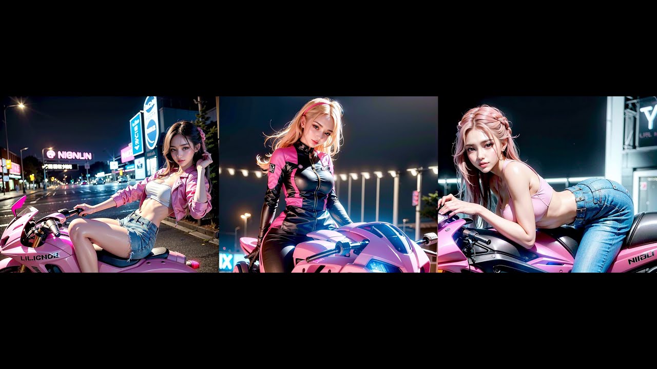 Ai Art Girls. Мотоциклистки в розовых костюмах