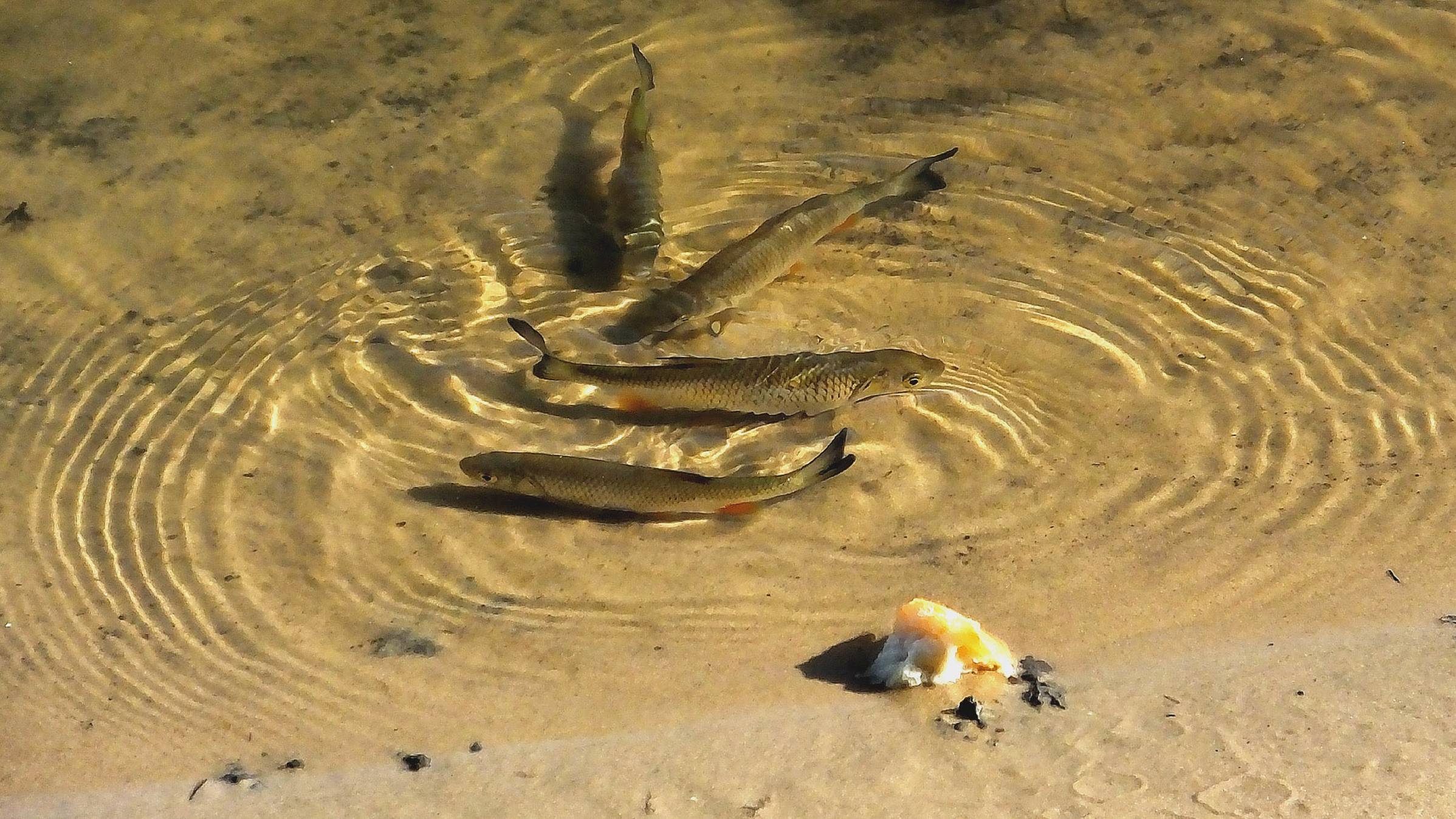 На этот раз хотел продолжить съёмку выхода мальков за батоном на берег. Не вышли. Есть одно подозрение. Проверю и обязательно сообщу.