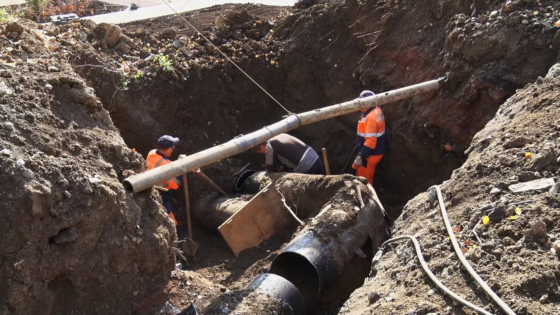 На улице Карла Маркса сегодня проводят переврезку водопровода диаметром 500 миллиметров