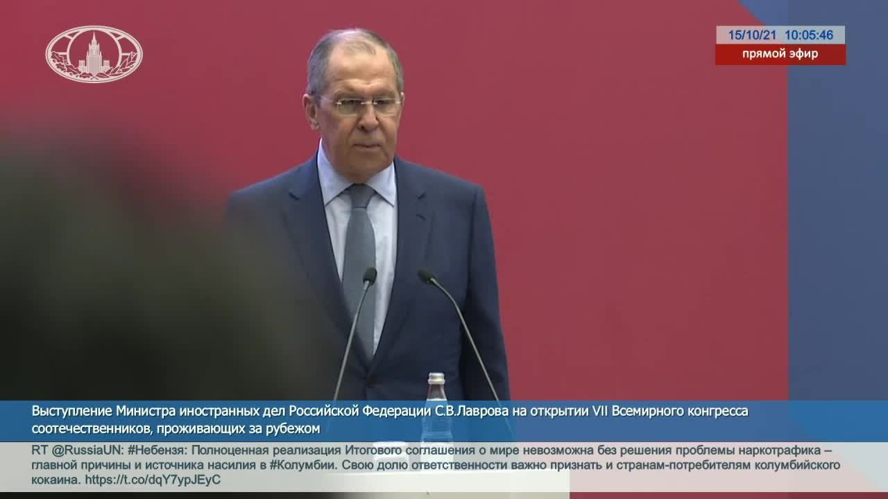 #ПрямойЭфир: Выступление С.В.Лаврова на открытии 7-го Всемирного конгресса соотечественников, проживающих за рубежом.