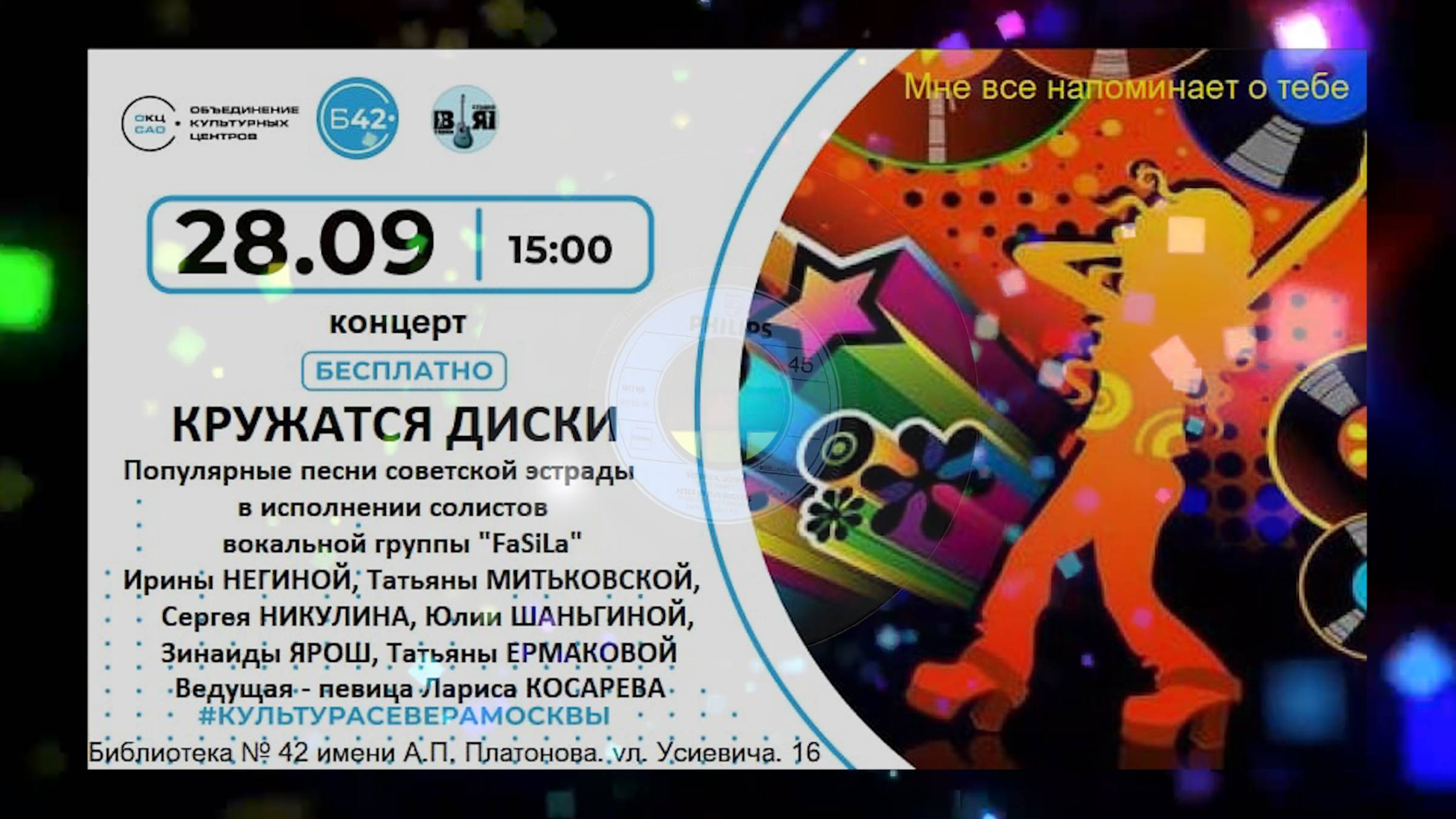 "КРУЖАТСЯ ДИСКИ" (28.09.2024) - концерт солистов "FaSiLa" - библиотека №42 им А.П.Платонова