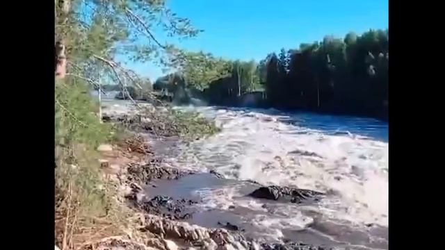 Кадры с места прорыва временной перемычки между шлюзами Беломорско-Балтийского канала в Карелии
