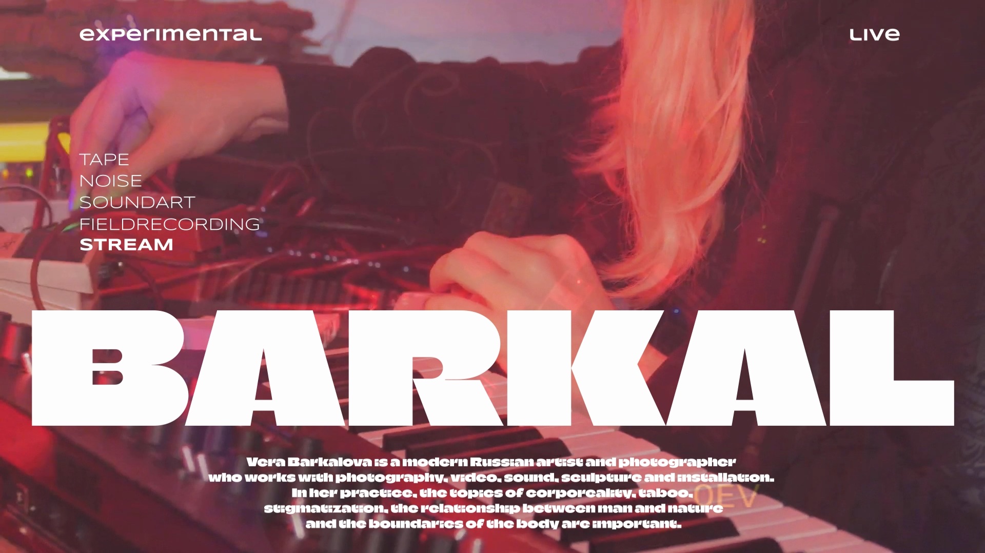 #live #experimental #noise #fieldrecording #soundart Запись стрима в лучшем качестве! Вера Баркалова — современная российская художница и фотограф, работающая с фотографией, видео, звуком, скульптурой и инсталляцией. В её практике важны темы телесности, табу, стигматизации, взаимоотношений человека и природы и границ тела. t.me/Streamachnida - анонсы стримов
