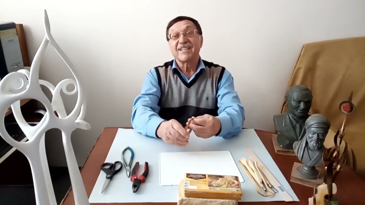 В этом первом видеоуроке по дистанционному обучению скульптуре для первого класса учитель знакомит учеников и родителей с переходом на семейное образование из-за коронавируса, уверяя, что вместе справятся с новой формой занятий по календарно-тематическому плану четвёртой четверти. Педагог напоминает о домашнем задании на каникулах — эскизах скульптур «дети и животные», хвалит за понимание задания и переходит к демонстрации необходимых инструментов и материалов для лепки в пластилине. Основное внимание уделяется мягкому пластилину разных цветов, деревянным стекам (пластмассовые ломаются на твёрдом пластилине), двум деревянным линейкам для разметки и выравнивания плинта, проволоке диаметром 1–1,5 мм (медной или алюминиевой) для обязательного каркаса фигур. Для работы с проволокой рекомендуются маленькие пассатижи, ножницы по металлу или обычные ножницы. Учитель объясняет план экзаменационной работы «круглая скульптура: дети и животные» (16 часов): после готовых эскизов последуют уроки по изготовлению плинта, формированию проволочного каркаса и облепливанию его пластилином для создания объёмной формы. Видеоуроки начнутся непосредственно с лепки, а пока даётся время собрать материалы. Урок завершается первой встречей, пожеланиями успехов и обещанием скорой продолжения занятий. Автор - художник Гончаров Николай Васильевич (1944-2025)