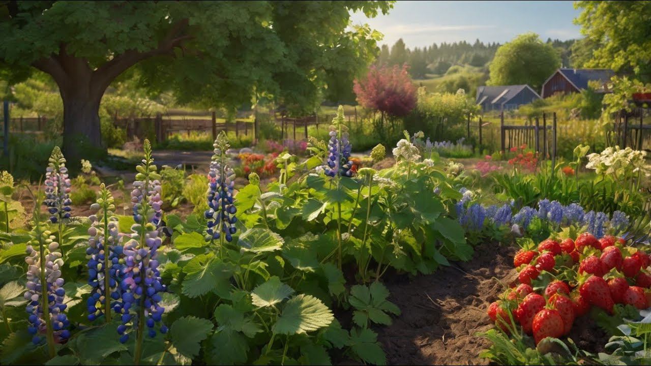 Люпины в подмосковном огороде под ЛЭП. Чистая фантазия нейросетей. 1 июня 2024