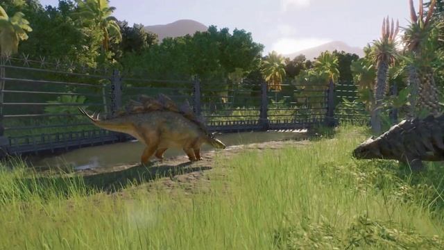 стегозавр против анкилозавра в jurassic world evolution 2