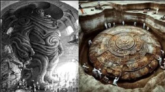 Два просторных зала этой пещеры, освещенные мягким серебристым светом, который исходил от множества подвешенных у сводов шаров, были заполнены неведомыми машинами. Даже с потолка свисали странные аппараты и механизмы. Некоторые из них были покрыты чем-то похожим на стекло. На полу зала было множество каких-то картин и «иероглифов». В его стену была вмонтирована большая черная панель. При попытке прикоснуться к ней, она поворачивалась, открывая темный проход. По нему можно было попадали во второй зал, также до предела заполненный машинами.