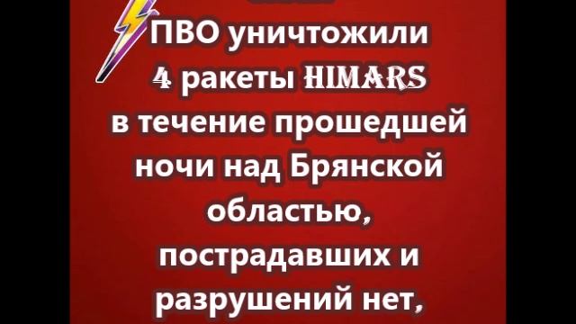 Силы ПВО уничтожили 4 ракеты HIMARS в течение прошедшей ночи над Брянской областью