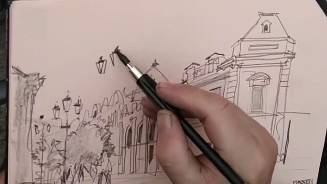 Городская зарисовка Иркутск Карандаш Акварель Белила UrbanSketch Quickdraw Скетч Archisketch
