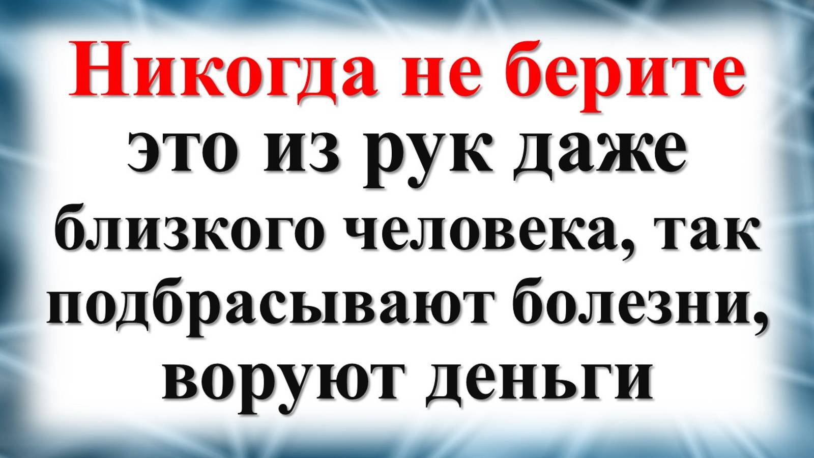 Узнайте, какие вещи никогда нельзя брать из рук даже близкого человека! В этом видео мы расскажем о предметах и вещах через которые подбрасывают болезни и крадут вашу денежную удачу. Откройте для себя народные приметы и суеверия, связанные с этими предметами и вещами. Защитите себя и своих близких от негативных последствий. ✎﹏﹏﹏﹏﹏﹏﹏﹏﹏﹏﹏﹏﹏﹏ ❤️Благодарность можно выразить: карта Мир: 2204120116234762 Яндекс счёт (Юмани) 4100112200058180 Донат: https://boosty.to/ezforyou/donate 💳Международные переводы, карта: 5363 5420 1379 5555 Пусть вернётся ВАМ ДОБРО здоровьем, благополучием, щедрыми помогающими руками в нужный час. Благодарим Вас за поддержку! ✎﹏﹏﹏﹏﹏﹏﹏﹏﹏﹏﹏﹏﹏﹏ (c)&(p) Aramat Group (О1209) © Aramat Group, 2024