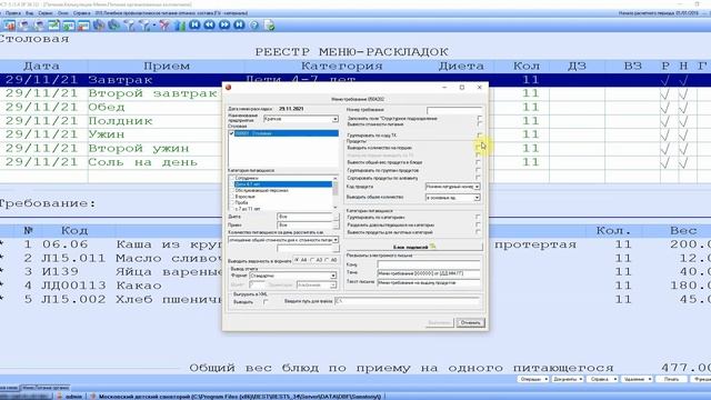 БЭСТ-5 Питание. Меню-раскладка