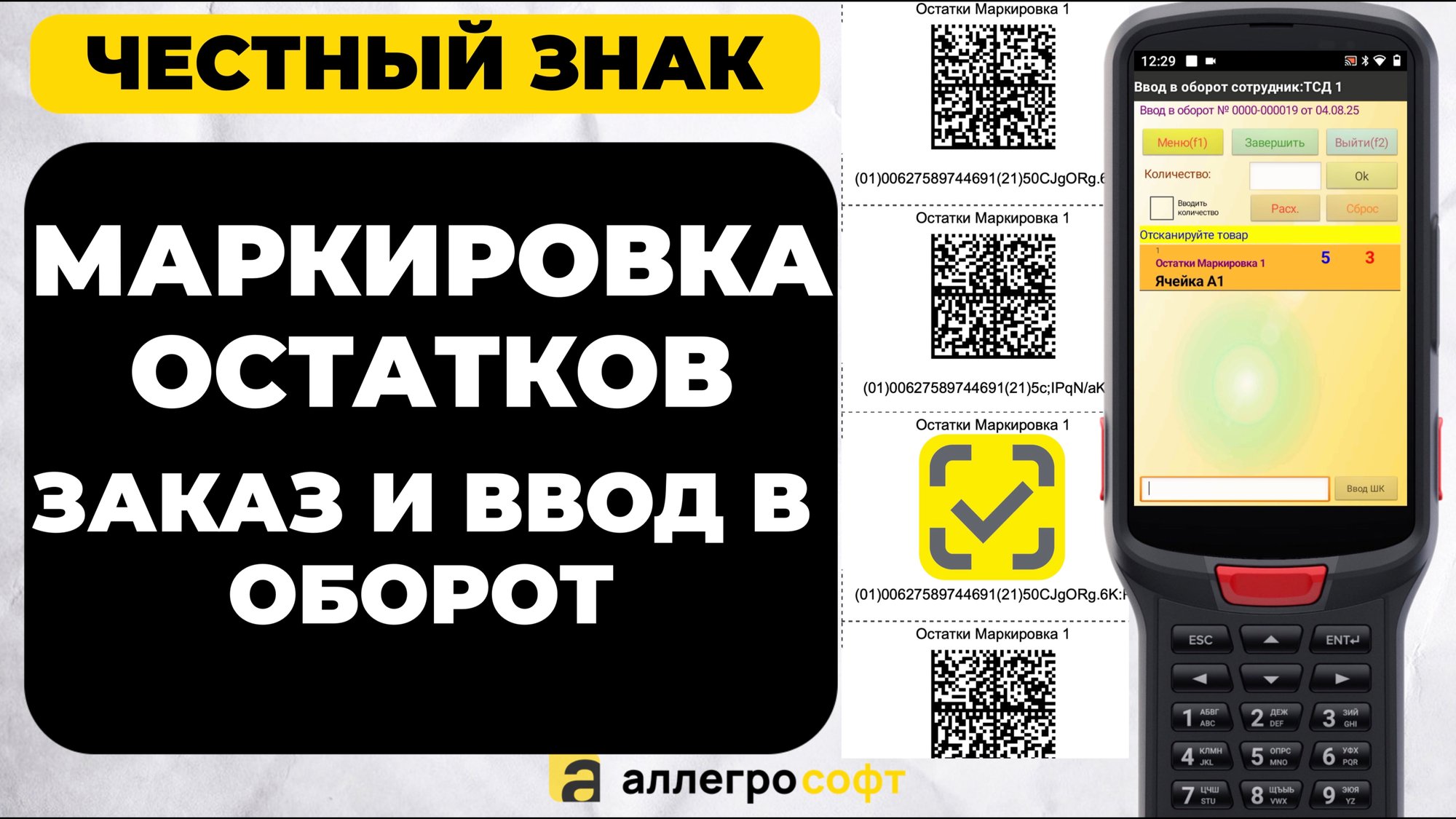 Продукция которую вы производите / продаете скоро будет подлежать обязательной маркировке (Честный Знак).Если на сегодняшний день ещё нет, то скоро это обязательно случится. А для тех, кто уже «попал» мы сделали видео про процесс маркировки складских остатков. Используя ТСД с программой AllegroCount и модуль «Аллегро Маркировка» данную операцию можно автоматизировать. А значит избежать расхождений, ошибок нанесения и дублирования на этапе Заказа (Эмиссии) и при вводе в оборот. 0:23 Инвентаризация остатков на ТСД 0:45 Создание документа «Маркировка ИСМП» 1:00 Эмиссиия и печать кодов 1:28 Ввод в оборот и контроль 2:02 Передача данных в Честный Знак 2:21 Создание документов на терминале сбора данных Скачать и протестировать программу: https://allegrosoft.ru/n/programma-dlya-tsd-allegrocount AllegroSoft - https://allegrosoft.ru/ канал об автоматизации бизнеса Telegram канал - https://t.me/allegrosoft ★Автоматизация магазина и склада, работа с маркировкой. ★Загрузка данных на ТСД из 1с. ★Ускорение комплектации и сбора заказов на 50%. ★Ускорение инвентаризации склада на 70%. ★Возможность автоматизации “ручных” процессов на складе/магазине. Заходите, смотрите и подписывайтесь на канал! Мы в интернете: ➧ Сайт - https://allegrosoft.ru/ ➧ Почта - info@allegrosoft.ru ➧ Телефон - +7 (499) 213-02-73 Наш канал: https://www.youtube.com/@allegrosoft_company