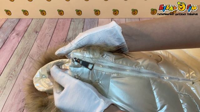 330709 Комбинезон Lanson Kids зимний на молнии с меховой опушкой перламутрово-бежевый