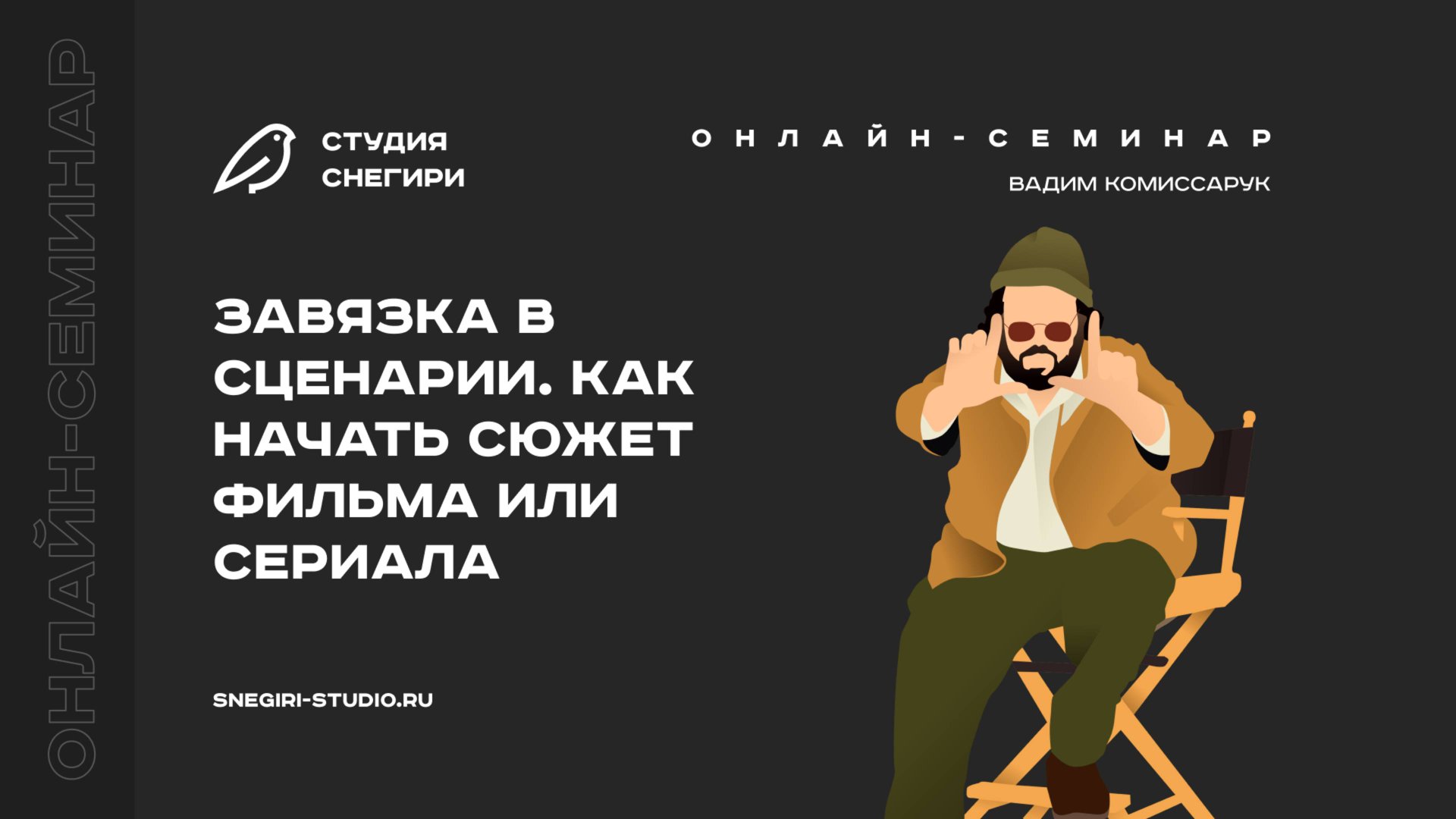 Семинар Студии Снегири для сценаристов, писателей, режиссеров, фильммейкеров — Завязка в сценарии. Как начать сюжет фильма или сериала. Сайт студии Снегири: https://snegiri-studio.ru/head Бесплатный вводный курс в сценарное мастерство: https://snegiri-studio.ru/start Бесплатный курс: Как свой рассказ или роман превратить в киносценарий: https://snegiri-studio.ru/adaptation Базовый курс сценаристов кино и сериалов: https://snegiri-studio.ru/basic-screenwriting-course Сценарная мастерская: https://snegiri-studio.ru/scenario-studio Курс: "Стандарты оформления сценария и всех материалов": https://snegiri-studio.ru/script-design-standarts-course Курс: "Нейросети для сценариста: Полный набор": https://snegiri-studio.ru/ai Курс сценаристов комедии: https://snegiri-studio.ru/comedy-scriptwriting-courses Продвинутый курс сценаристов кино и сериалов: https://snegiri-studio.ru/advanced-screenwriting-course Курс сценарий короткометражного фильма: https://snegiri-studio.ru/short-film-writing-course Каталог всех курсов для сценаристов: https://snegiri-studio.ru/snegiri-studio-vse-kursy Каталог экстра-интенсивов для сценаристов: https://snegiri-studio.ru/extra-intensives-for-screenwriters Блог Студии Снегири: http://snegiri-studio.ru/blog Отзывы о Студии Снегири: https://snegiri-studio.ru/reviews Библиотека сценариев фильмов и сериалов на русском языке: https://snegiri-studio.ru/y/f55cc0a Энциклопедия начинающего сценариста: https://snegiri-studio.ru/enciklopediya-nachinayushchego-scenarista Контакты кинокомпаний, киностудий, продюсеров: https://snegiri-studio.ru/kontakty-kinostudiy-tv-prodyuserov Темы семинара: — Что такое завязка в сценарии фильма или сериала — Типы завязки в сценарии — Как выстроить завязку фильма или сериала — Типичные ошибки начинающих сценаристов в создании завязки — Ответы на дополнительные вопросы участников семинара ==================================================== #сценарий #семинар #завязка ===================================================== Ведет онлайн семинар: Вадим Комиссарук - креативный продюсер, сценарист, автор проектов на 1 канале, СТС, ТНТ, ПЯТНИЦА и других ===================================================== О чем это вообще: Фильммейкинг Как снимать кино Драматургия Сторителлинг Как написать сценарий Как стать сценаристом Как стать режиссером Шоураннер Киноиндустрия Киносценарий Персонаж Мидпоинт Сценарное мастерство Путь героя Путешествие писателя Школа кино Сценарная мастерская