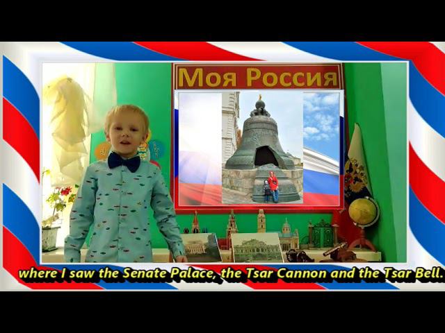 Международный конкурс «Расскажи миру о своей Родине» - проект по патриотическому воспитанию детей и молодёжи и формированию дружественных международных связей между подрастающими поколениями разных стран. «Добрый день, уважаемые организаторы конкурса! Поучаствовать в международном конкурсе нам предложила воспитатель - Семененко Марина Михайловна. Я с мамой очень заинтересовался этой идеей, потому что мы очень любим путешествовать и посещать культурные места своего родного города Санкт- Петербурга и других городов нашей страны. Выбор темы пришёл сразу, так как город Москва - это столица России и мы недавно там побывали. Пока мы отбирали фотографии, с большим удовольствием вспоминали наше путешествие, строили планы на следующую поездку: какие места мы желаем посетить, что нового и интересного увидеть. Ведь наша страна - Россия - так велика и прекрасна! Готовя материал, подробнее прочитали о важных достопримечательностях Московского Кремля: о памятниках "Царь- пушка"и "Царь - колокол". Благодаря участию в конкурсе, мы просмотрели работы других участников, увидели, как много людей хотят поделиться любовью к своим родным местам. Меня переполняет чувство гордости, что я живу в такой прекрасной, могучей стране - России! Я люблю тебя, моя Родина! Я, моя мама- Елена Николаевна и воспитатель- Марина Михайловна, выражаем благодарность организаторам конкурса. Теперь будем ежегодно принимать в нём участие!»