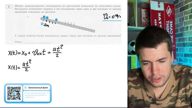 Шарик равноускоренно скатывается по наклонной плоскости из состояния покоя. Начальное - №20424
