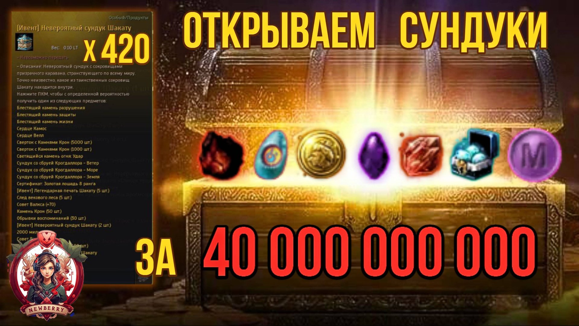 💰 Открываем 420 Невероятных сундуков Шакату за 40 миллиардов! Что же выпадет на этот раз? Повезет или я опять в минусе? 🔍 Сможем ли мы получить редкие предметы? Смотрите видео до конца, чтобы узнать, что нам выпало и стоит ли вам тратить свои накопления на эти сундучки. 🌟 Приятного просмотра! 🎥 Ссылка на видео с другой платформы: https://youtu.be/GE5v3uS1L3E ---------------------------------------------------------------------------------------------------------------------- ✨ Если вам нравится мой контент, вы можете поддержать меня на Patreon или Boosty. Это поможет мне создавать еще больше качественного контента для вас! Спасибо за ваши лайки и поддержку! 🙏💖 https://www.patreon.com/NewberryGaming https://boosty.to/newberrygaming https://boosty.to/newberrygaming/donate ╭══════════════════════════════════════════════════════════• ☘ •══════════════════════════════════════════════════════════╮ 🙏 Благодарю каждого за вашу щедрую поддержку и доверие! Ваша платная подписка помогает мне создавать еще больше качественного контента и радовать вас интересными видосиками! Всевышний верховный на Boosty: 🌟Deceptive🌟 Повелители мира на Boosty: 🌟Rwin🌟 🌟Mizukemuri🌟 Сервер бустер Discord: 🌟Absolu🌟 🌟nimura🌟 Спасибо, что вы со мной! ╰══════════════════════════════════════════════════════════• ☘ •══════════════════════════════════════════════════════════╯ ---------------------------------------------------------------------------------------------------------------------- 🔗 Мой Discord: https://discord.com/invite/rdsjFBncfr 📌 Ссылки: Black desert online: https://www.ru.playblackdesert.com/ 🔍 Таймкоды: 00:00 Приветствую! 00:21 Полный список предметов и шанс их выпадения. Начинаем открывать 06:55 Следующие 210 сундуков 13:35 Подводим итоги 13:51 Благодарность за поддержку на Boosty и Patreon и Discord 💬 Пожалуйста, не стесняйтесь, делитесь своим опытом, мыслями, идеями, вопросами, предложениями в комментариях ниже! 👍 Если вам понравилось видео, поставьте лайк и подпишитесь на канал! ---------------------------------------------------------------------------------------------------------------------- #blackdesertonline #bdo #Сундуки #unboxing #шакату