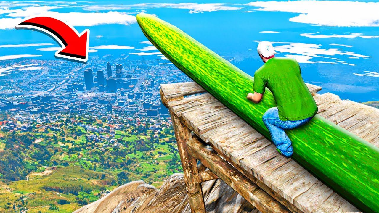 СБРОСИЛ САМЫЙ ДЛИННЫЙ ОГУРЕЦ С ОБРЫВА ГТА 5 МОДЫ РАЙЛЮХА