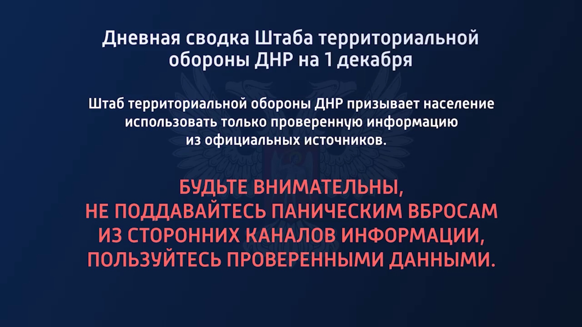 Дневная сводка Штаба территориальной обороны ДНР на 01.12.2022