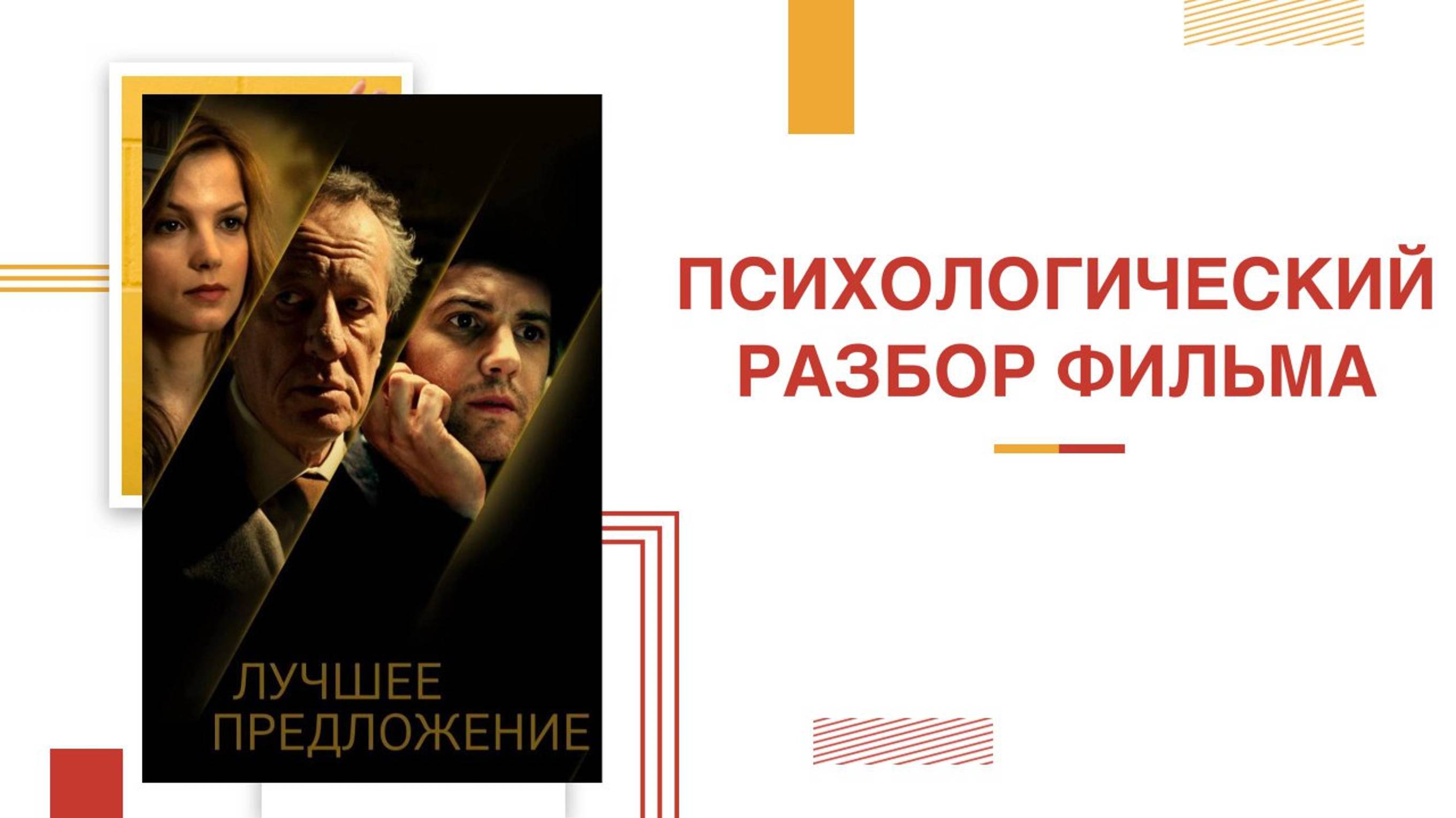 Ольга Швец провела потрясающий эфир по фильму Джузеппе Торнаторе "Лучшее предложение". 🔹 разобрали общие впечатления о фильме 🔹 поговорили о главных персонажах 🔹 обсудили темы дружбы и любви 🔹 пофантазировали насчёт альтернативных финалов Приятного просмотра! Контакты ведущих в телеграм Анна Устиманова @anna_ustimanova Екатерина Степаненко @Katerina_OneStep Ольга Швец @olgaa161