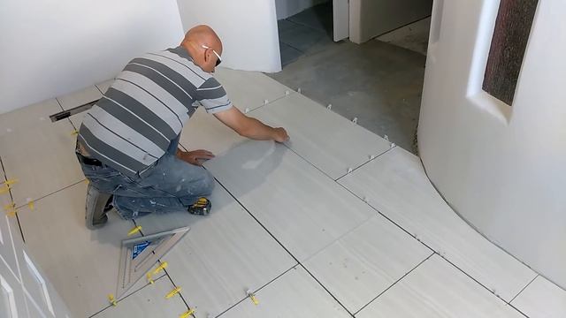 There are various options on how to fit tile, especially a larger porcelain tile around curved walls. Also there are a lot of tools that could assist in fitting the tile in various areas. Although in this video I am showing my way on how i fit the tile in a simple way. Installing larger tile, usually it takes a lot of readjustment before the final tile layout design in the irregular bathroom floor plan. On this remodeling project I demolished the old master bathroom and created rounded walls and rounded ceiling with the dome and arches so that this bathroom would have a very comfortable energy flow design. Also here I did build the round corner shower with the linear drainage, that means I was able to put this larger porcelain tile in a shower floor as well. This will be in a next video. I think that home remodeling requires a lot of creativity and sometimes not standard approach in readjusting the old design into a new one. By using larger tile in this type of bathroom design would give more stable appearance, although the tile must be design that way so that the larger lines would not evoke the distraction into the entire design.