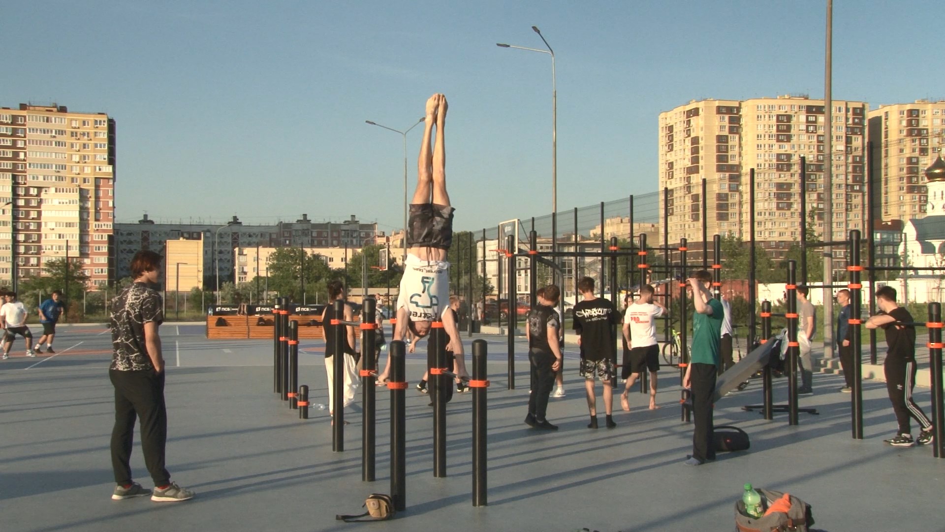Любители уличной гимнастики отрабатывают навыки на спортивной площадке в Крещенском парке. Присоединиться к занятиям может каждый желающий. Побывать на одной из тренировок удалось и нашей съёмочной группе.