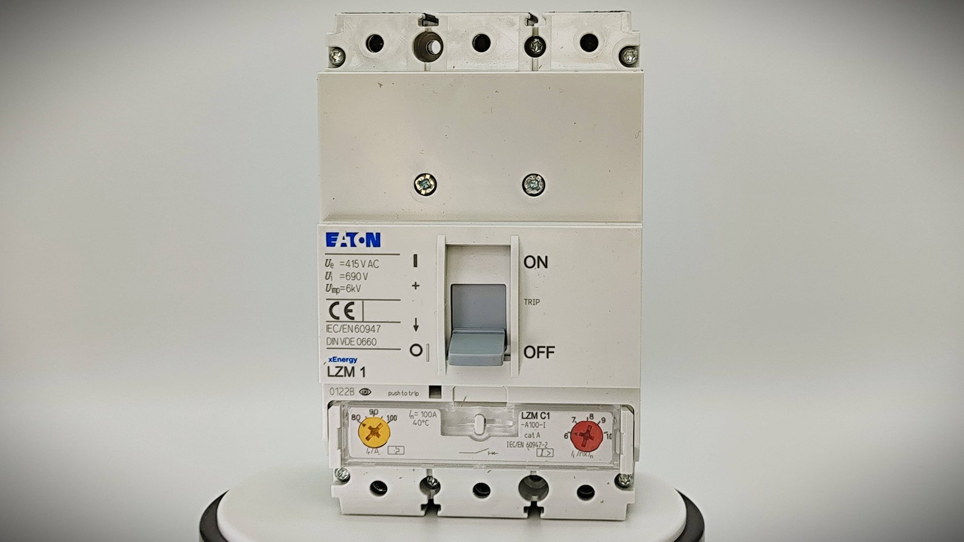 Автоматический выключатель в литом корпусе для защиты установок и кабельных линий производства EATON. Применяются в коммерческом и жилищном строительстве, а так же в промышленности. Имеет только стационарное исполнение. Аксессуары от старшей серии NZM так же подходят и для этой серии LZM. Номинальный ток 100 А, отключающая способность 36 кА. Заказывайте в нашем интернет магазине по ссылке: https://electroline.ru/product/lzmc1-a100-i-avtomaticheskiy-vyklyuchatel-100a-3-polyusa-otklsposobnost-36ka-diapazon-ustavki-80100a.html
