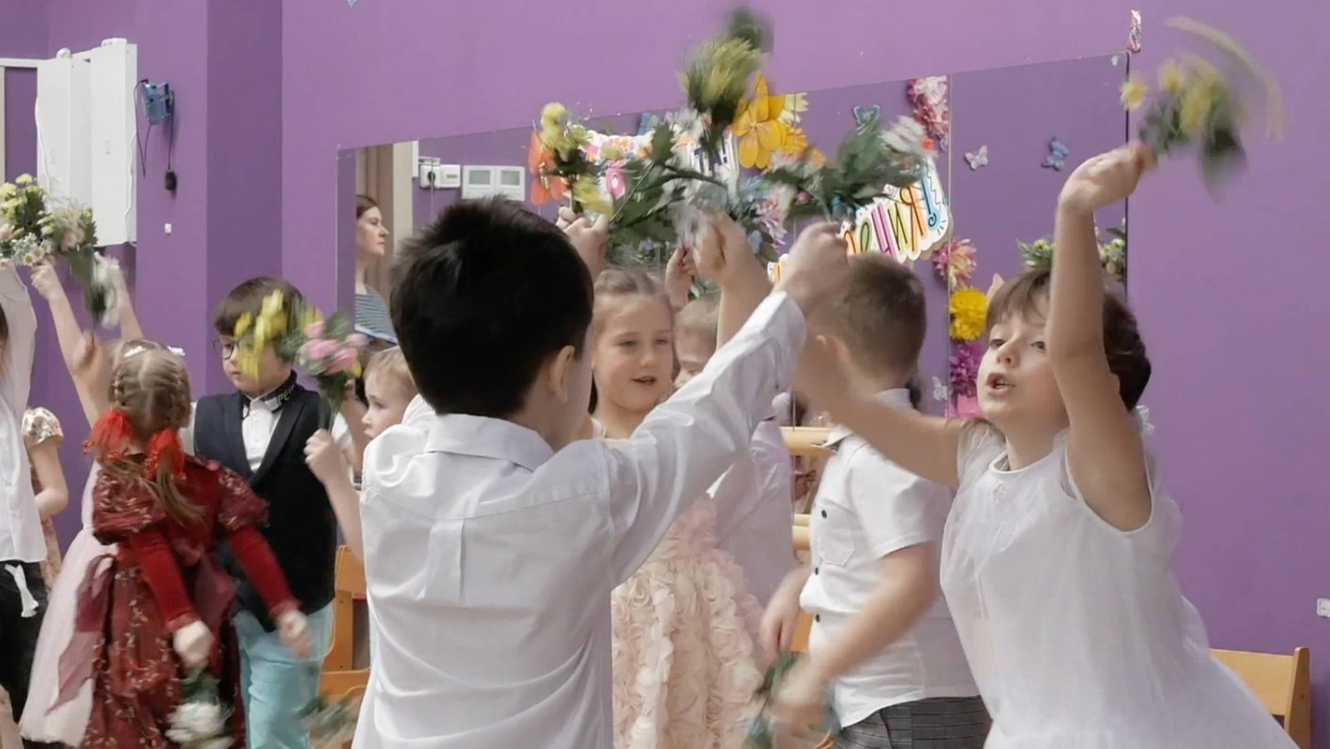 Пришла весна и ребята из сада решили сделать танец с цветочками, какое милое действие