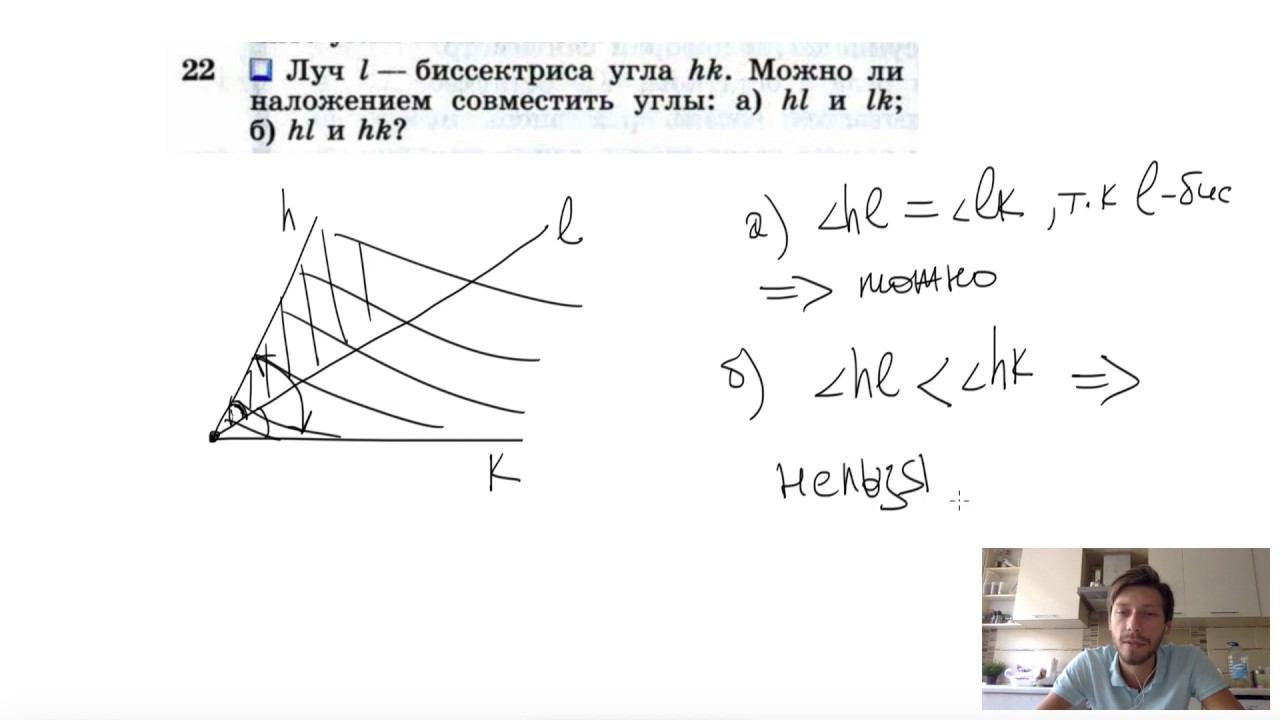 №22. Луч l - биссектриса угла hk. Можно ли наложением совместить углы: а.) hl и lk б.) hl и hk? Мой второй канал для подготовки к ЕГЭ и ОГЭ - https://www.youtube.com/ЕвгенийСумин Инстаграм - https://www.instagram.com/EGE_OGE.math VK - https://vk.com/evgeniysumin FB - https://www.facebook.com/EvgeniySumin