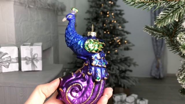 https://www.morozko-shop.ru/ Ёлочная игрушка СИНИЙ КОРОЛЕВСКИЙ ПАВЛИН, стекло, 15 см, T3672-2