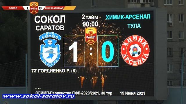 "Сокол" - "Химик-Арсенал" 1-0 (0-0). 30 тур ОЛИМП-Первенства России по футболу среди команд клубов ПФЛ 2020-2021 годов. Саратов, ст. "Локомотив". 15.06.2021г.