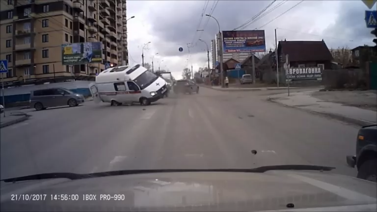 Водитель на перекрестке не заметил автомобиль "скорой помощи", врезался и опрокинул его #скорая #перекресток #переворот