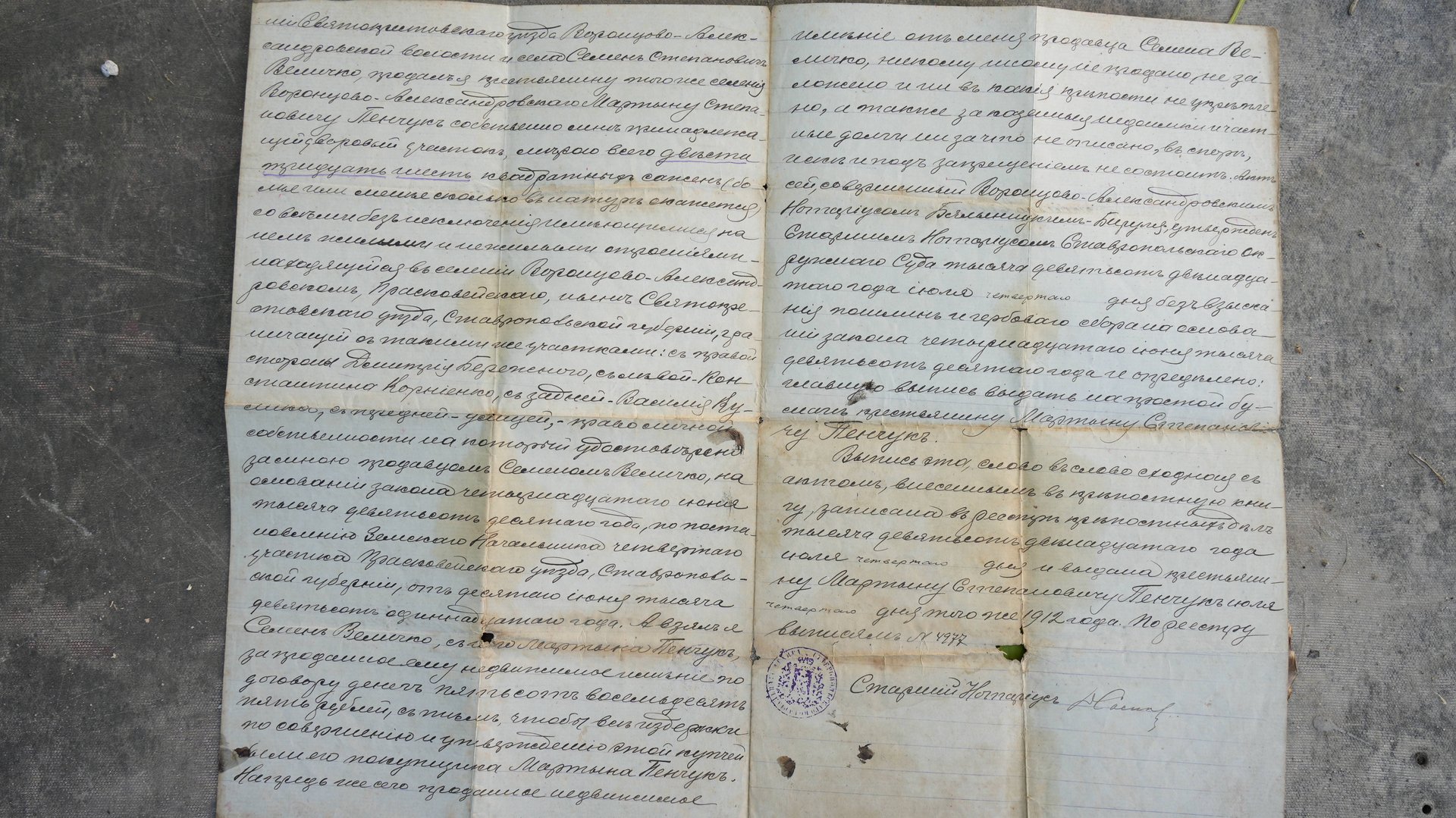 Зеленокумск история в одном документе. Купчая 1912 года Семён Величко и Мартын Пенчук