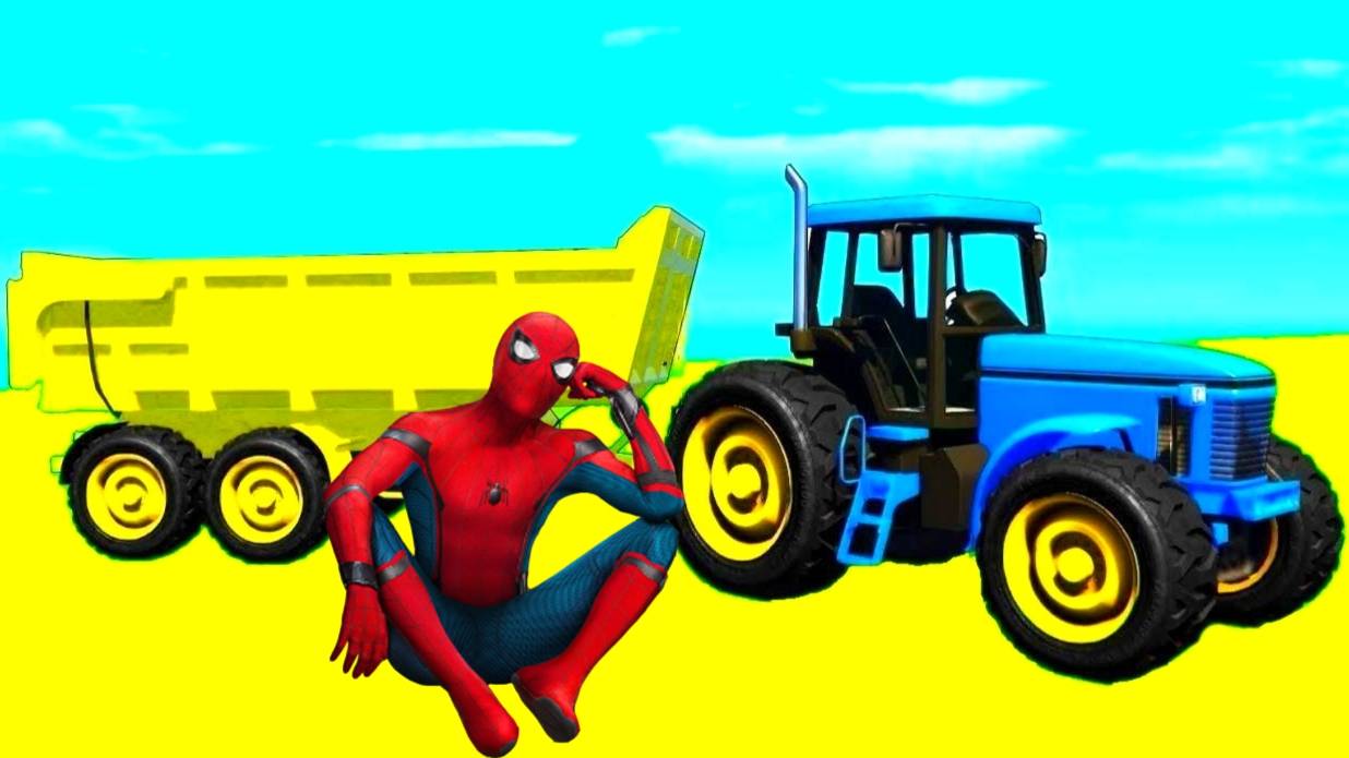 Мультики про машинки для детей трактор с прицепом, школьный автобус и грузовики для детей.