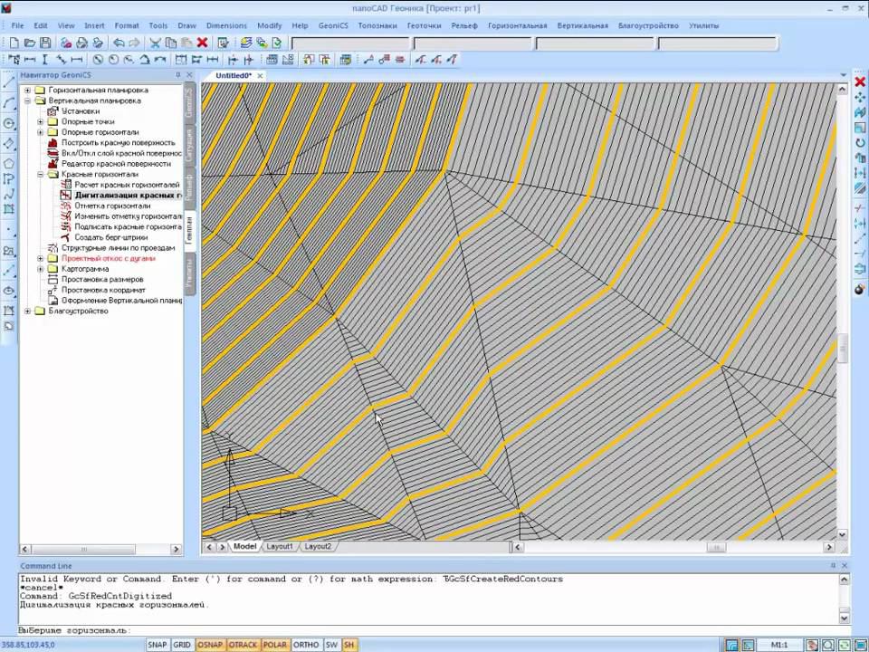 nanoCAD Геоника. Генплан: Красные горизонтали
