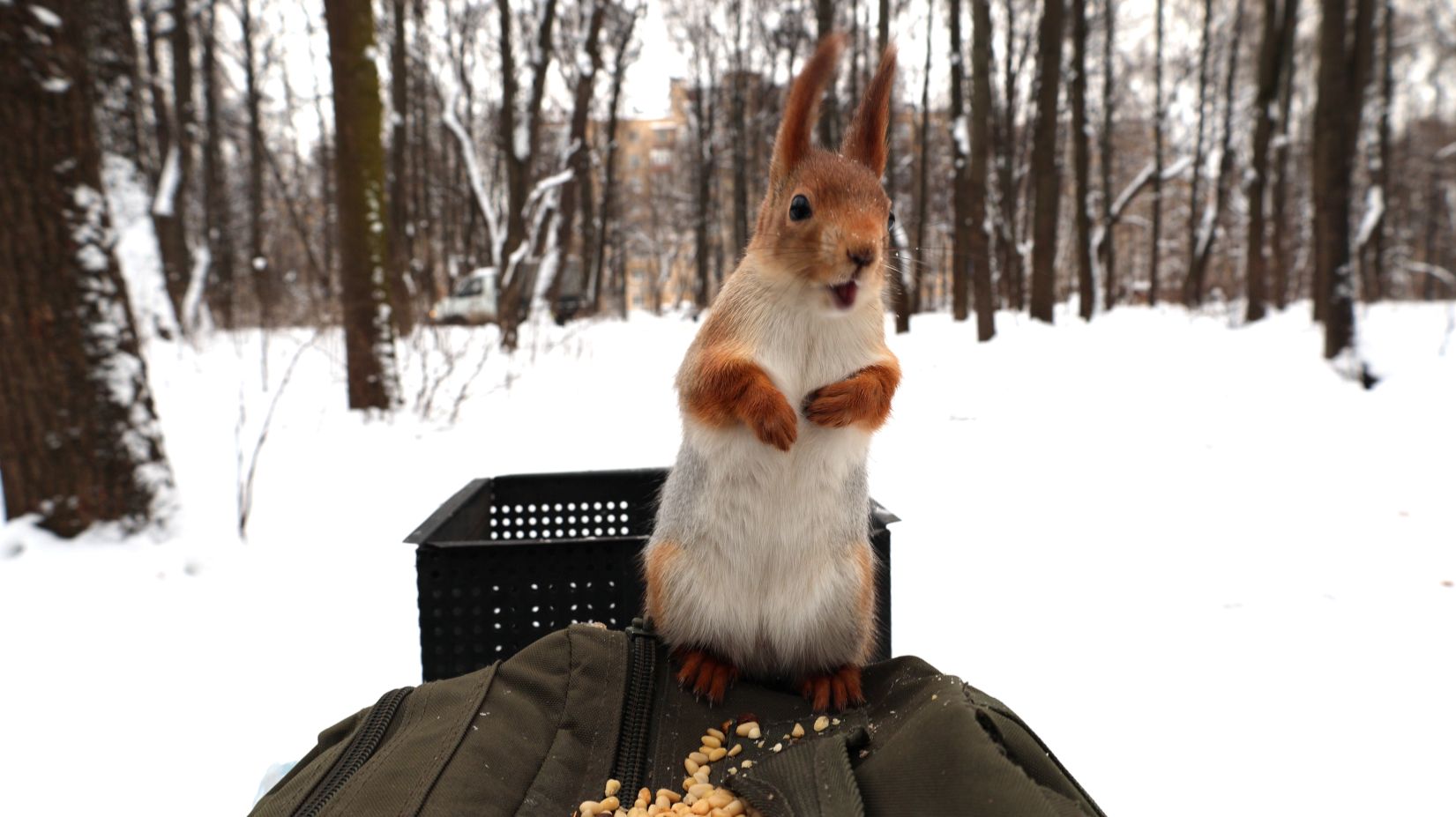 Две голодные милые белки