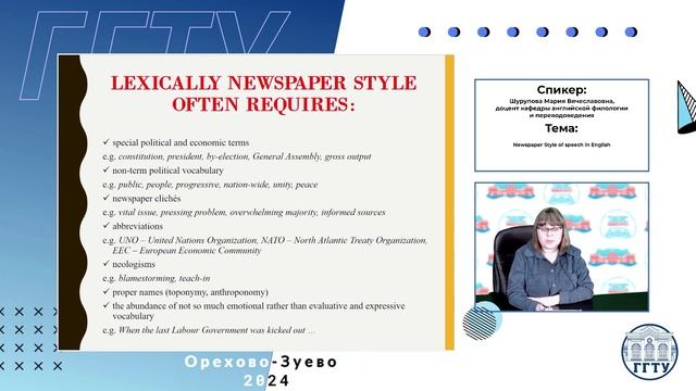 Newspaper Style of speech in English. Шурупова М.В