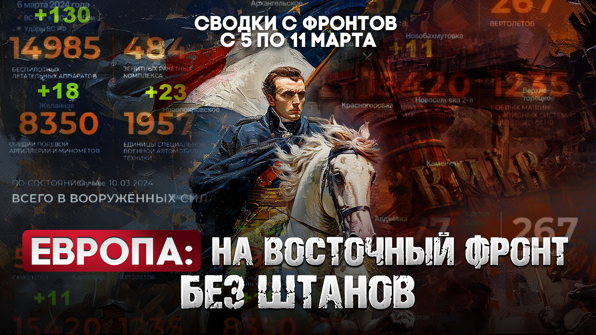 Большая фронтовая сводка 5-11 марта 2024 года Европа: на восточный фронт без штанов Друзья, мы собираем средства на нужды нашей подшефной 1-ой Гвардейской Славянской бригады. Для помощи ребятам на передовой: 💥Карта Сбербанк: 2202 2036 7992 1520 (Дарья) Огромная благодарность, что вы помогаете бойцам!