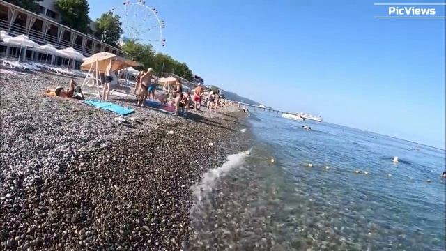 Сочи Лазаревское пляж Калипсо сегодня 17 июля 2025. Обстановка на море, погода сейчас в Лазаревском