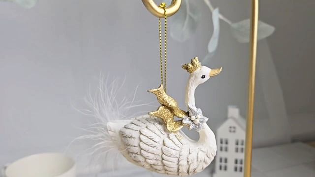 Ёлочная игрушка ЛЕБЕДЬ В КОРОНЕ, модель: шея вверх, полистоун, 8 см, E0477-2