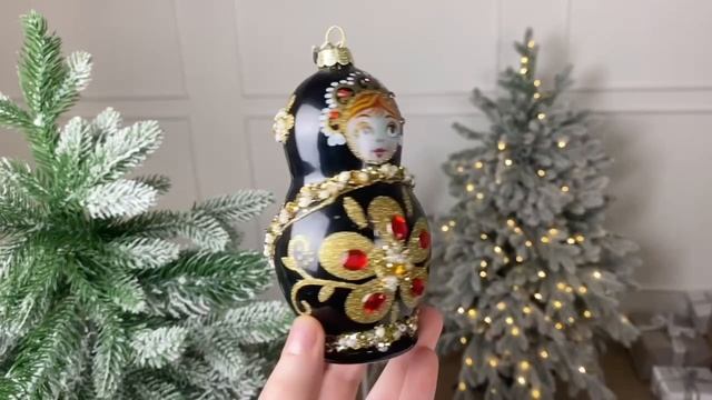 Ёлочная игрушка МАТРЁШКА - ЦВЕТОЧНЫЙ УЗОР, стекло, тёмно-шоколадная, 12 см, NB1605-1