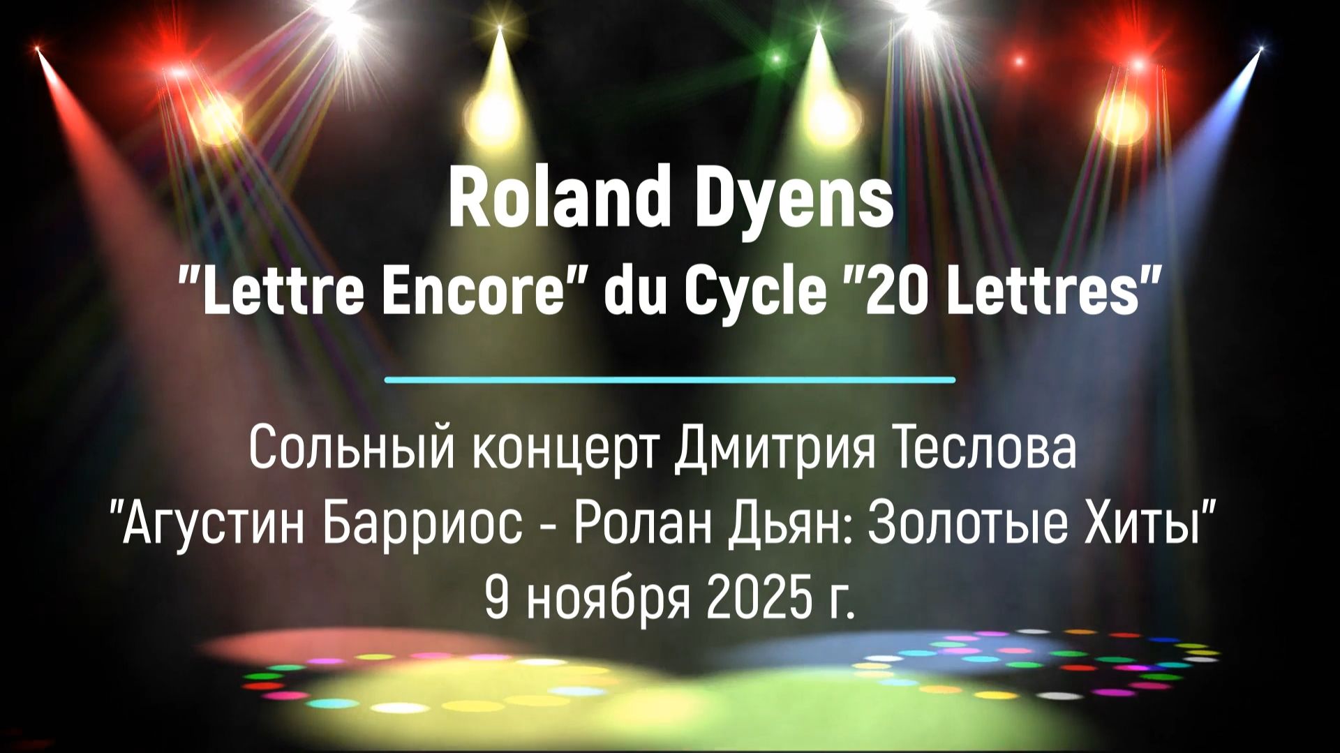 Roland Dyens. "Lettre Encore" du Cycle "20 Lettres". Сольный концерт Дмитрия Теслова "Агустин Барриос - Ролан Дьян Золотые Хиты" 9 ноября 2025 г. Скачать аудиоальбом Дмитрия Теслова "Anniversarium: Agustín Pío Barrios Mangoré & Roland Dyens. Golden Hits" 2025: https://teslov-music.ru/teslov-audio_anniversarium_barrios_dyens_2025.htm Все видео и аудио записи Дмитрия Теслова https://vkvideo.ru/@dmitryteslovofficial/all и https://teslov-music.ru/teslov-audio.htm Авторские сочинения для гитары https://teslov-music.ru/teslov-notes.htm
