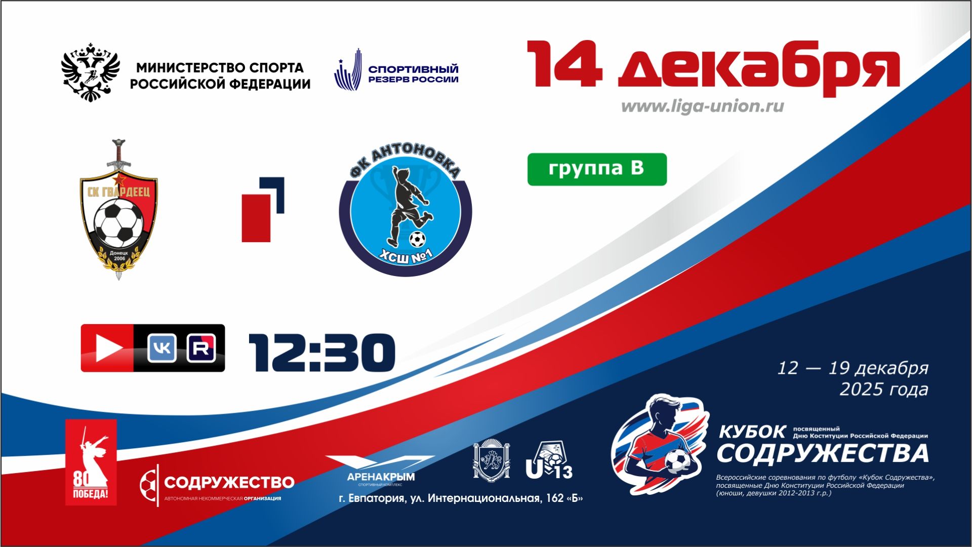 «Кубок Содружества» | Группа «В» | ФК «Гвардеец» (г. Донецк, ДНР) - ФК «Антоновка» (г. Херсон, Херсонская область) | 14.12.2025 | 12:30
