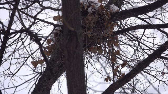 Белка у своего гнезда