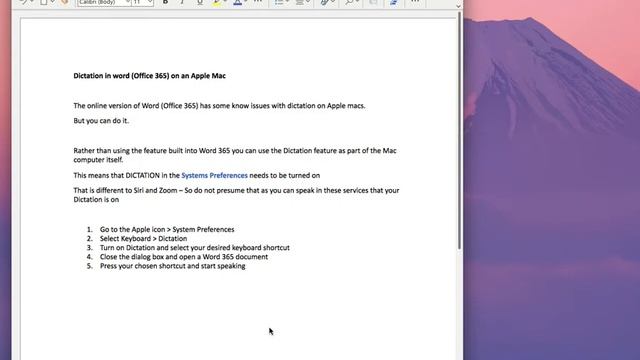 dictate into Word (Office 365) on a Mac