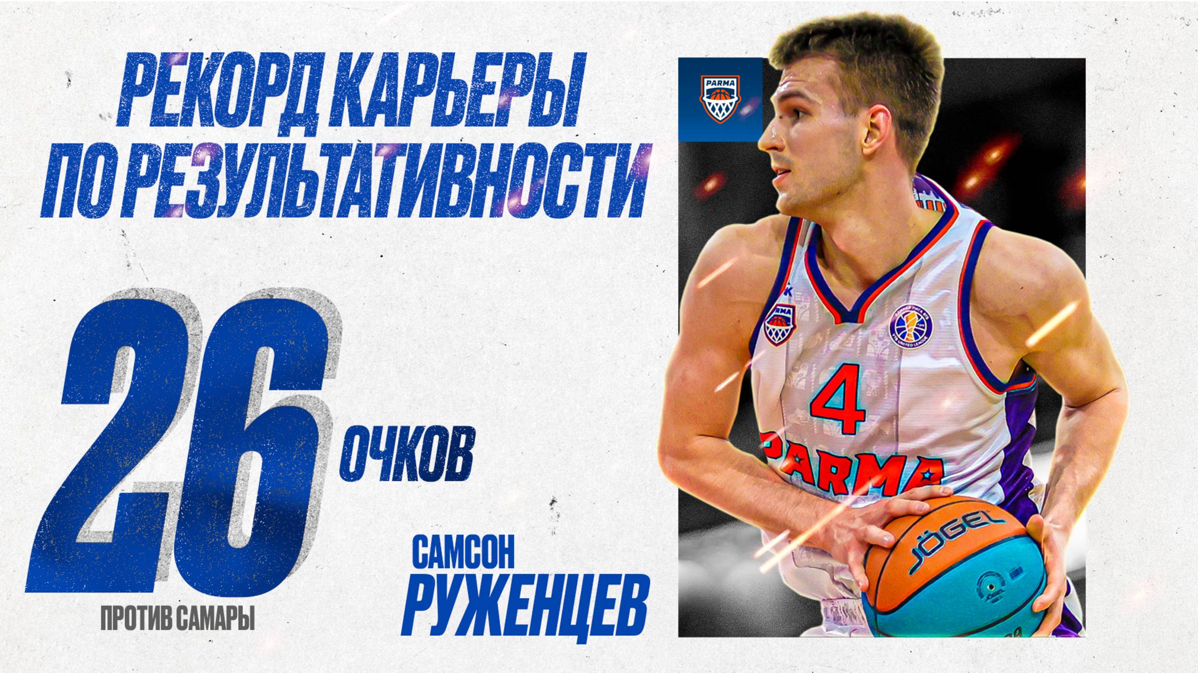 У Самсона Руженцева – лучший матч по результативности в карьере! 🤩 📊 23-летний форвард провел на паркете 38 минут, записав на свой счет 26 очков, 4 передачи и 19 баллов эффективности. Уже в четвертом матче за «ПАРМУ» Самсон устанавливает личный рекорд карьеры 👏 ❤️ – успешному выступлению молодого баскетболиста!