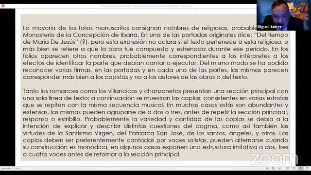La Academia Ecuatoriana de la Lengua y la Fundación Luis Humberto Salgado presentan a ustedes la conferencia «La música colonial quiteña», que tendrá que ver con el precioso acervo cultural del país que fuera hallado en un convento de Ibarra. El expositor es el maestro Miguel Juárez, experto que levantó de manera informática la totalidad de los manuscritos musicales que estuvieran en el archivo histórico de la diócesis de Ibarra. La investigación, que empezó a mediados de los años noventa del siglo pasado, se compila en tres tomos que se presentaron en 2018 con un concierto en la Casa de la Música, a cargo del coro Cantus Firmus y bajo la dirección de Gustavo Lobato.
