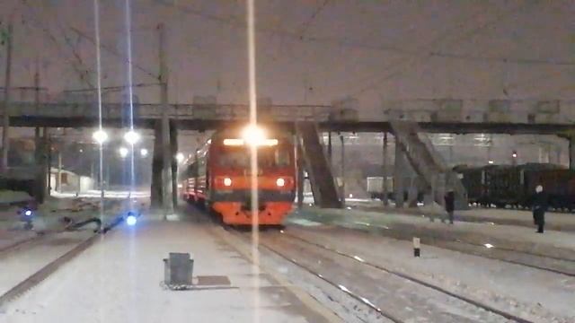 Электропоезд ЭД4МК-0110/0117 с пригородным поездом №6582/№6038 Ревда — Аэропорт Кольцово прибывает на 3-й путь Ст. Шарташ, г. Екатеринбург, Свердловская обл., СВЖД Дата: 31.01.2023